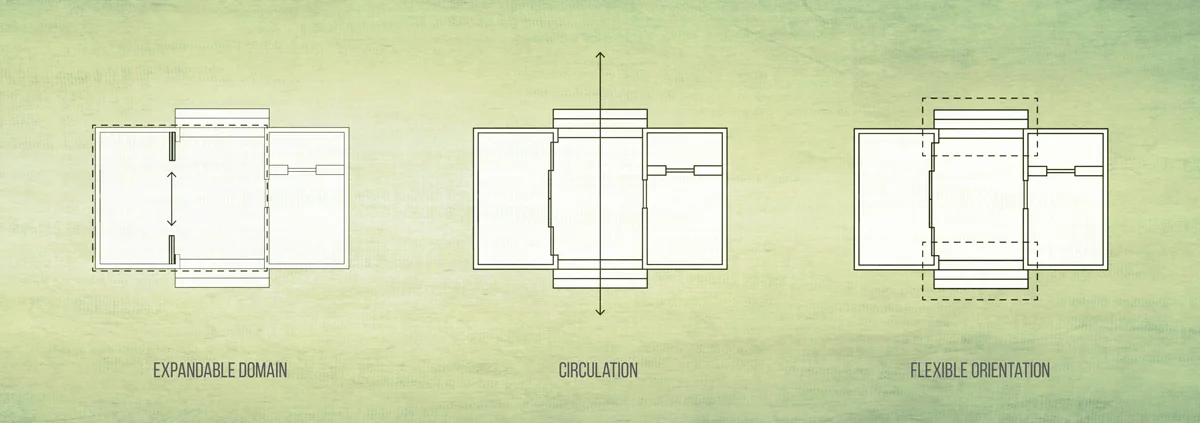 We were asked to design a small, economic, and repeatable unit with under 400 square feet of interior space that four people could inhabit. The social and mental health of these people were of particular importance to me. I found myself continuously asking the questions like "how do you invite someone into your home, when you barely have enough space for yourself?" and "How can we offer people a living space that also allows them to live with dignity?"